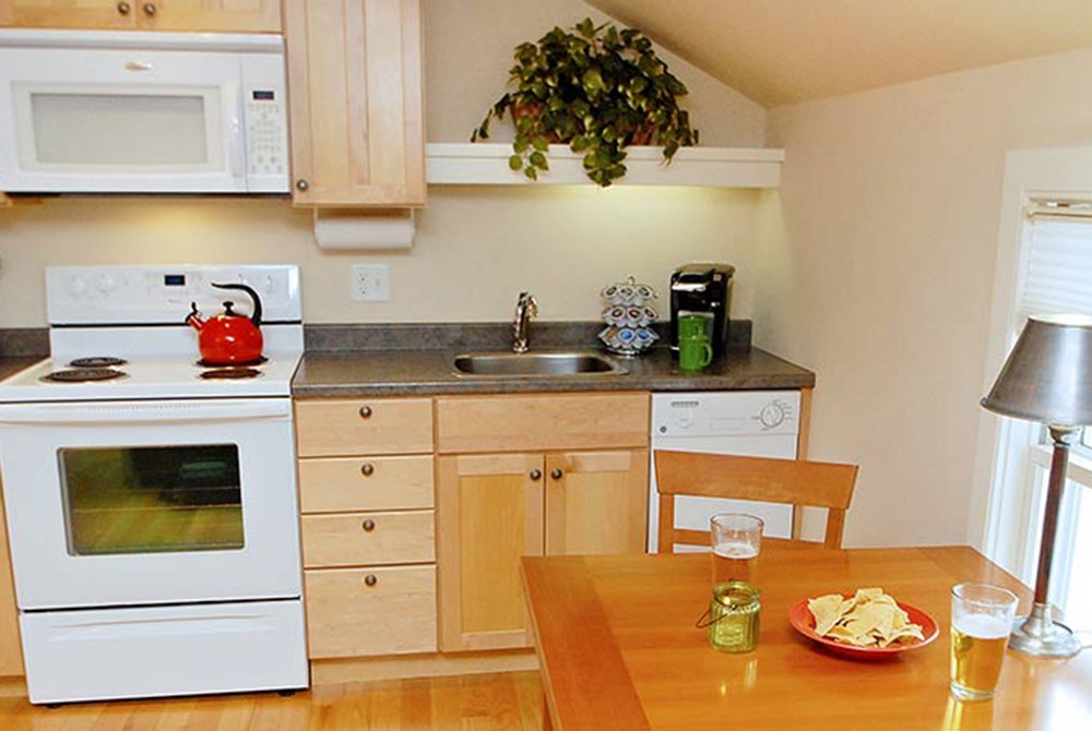 A cozy bedroom beckons guests for a good night’s sleep after a day of outdoor activity or sightseeing. The spacious living area includes a queen-size sleeper sofa, a fully equipped kitchen, and a window-side dining area. This suite feels like a spacious apartment and offers two private sleeping areas for up to 4 guests.